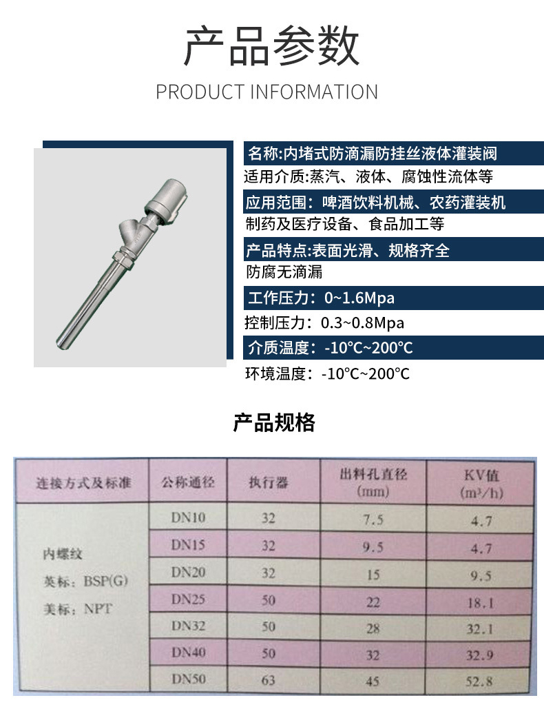 內(nèi)堵式液體灌裝機(jī)灌裝閥不銹鋼內(nèi)堵式防滴漏內(nèi)堵式灌裝閥